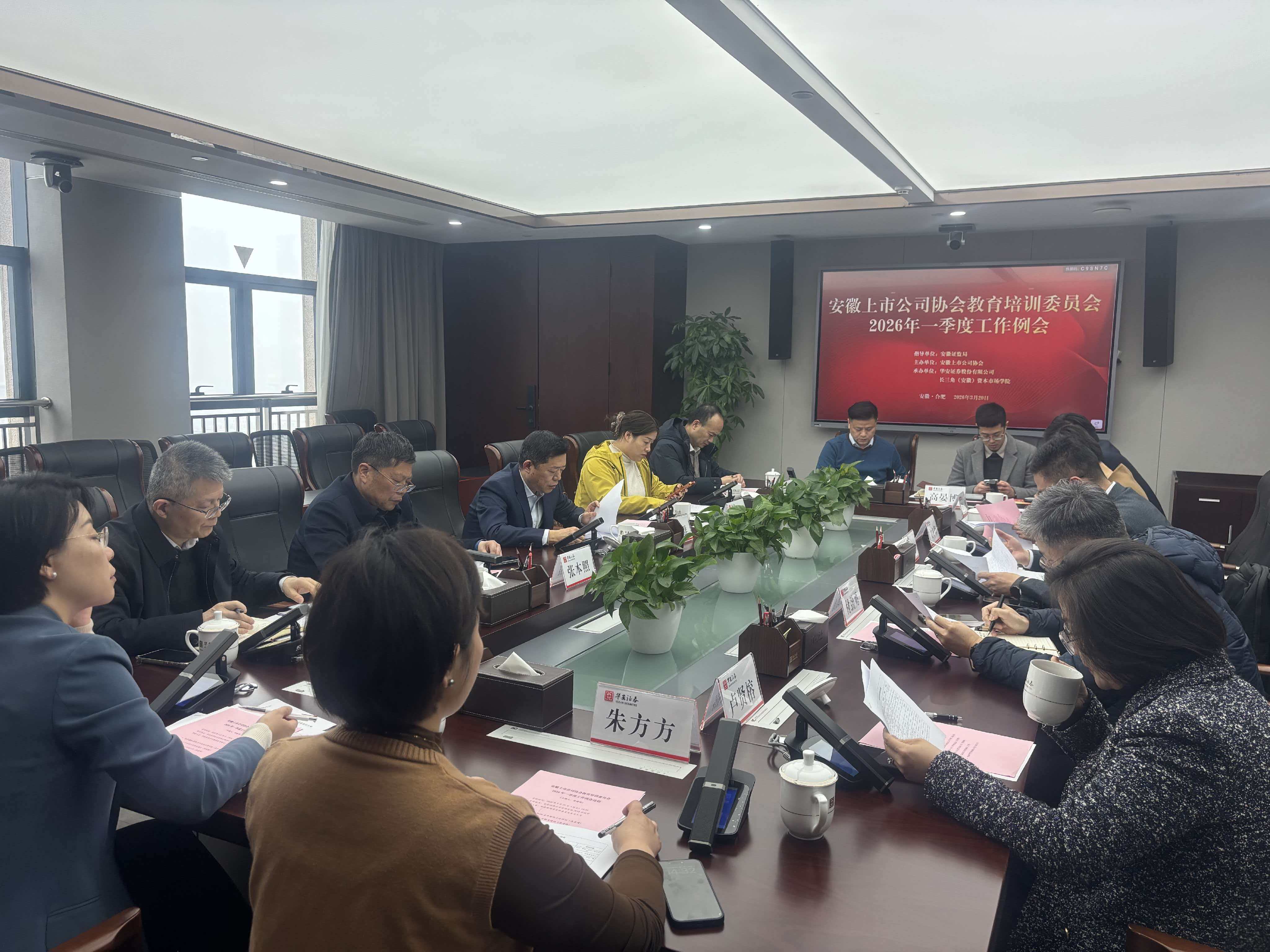 为深入推进辖区资本市场人才培育与行业文化体系建设,高效落实2026年全年培训计划,助力上市公司治理效能与高质量发展能力双提升,在安徽证监局指导下,安徽上市公司协会教育培训委员会2026年一季度工作例会于3月20日在华安滨湖总部顺利召开,二十余名委员、专家库专家及相关人员现场参会。
