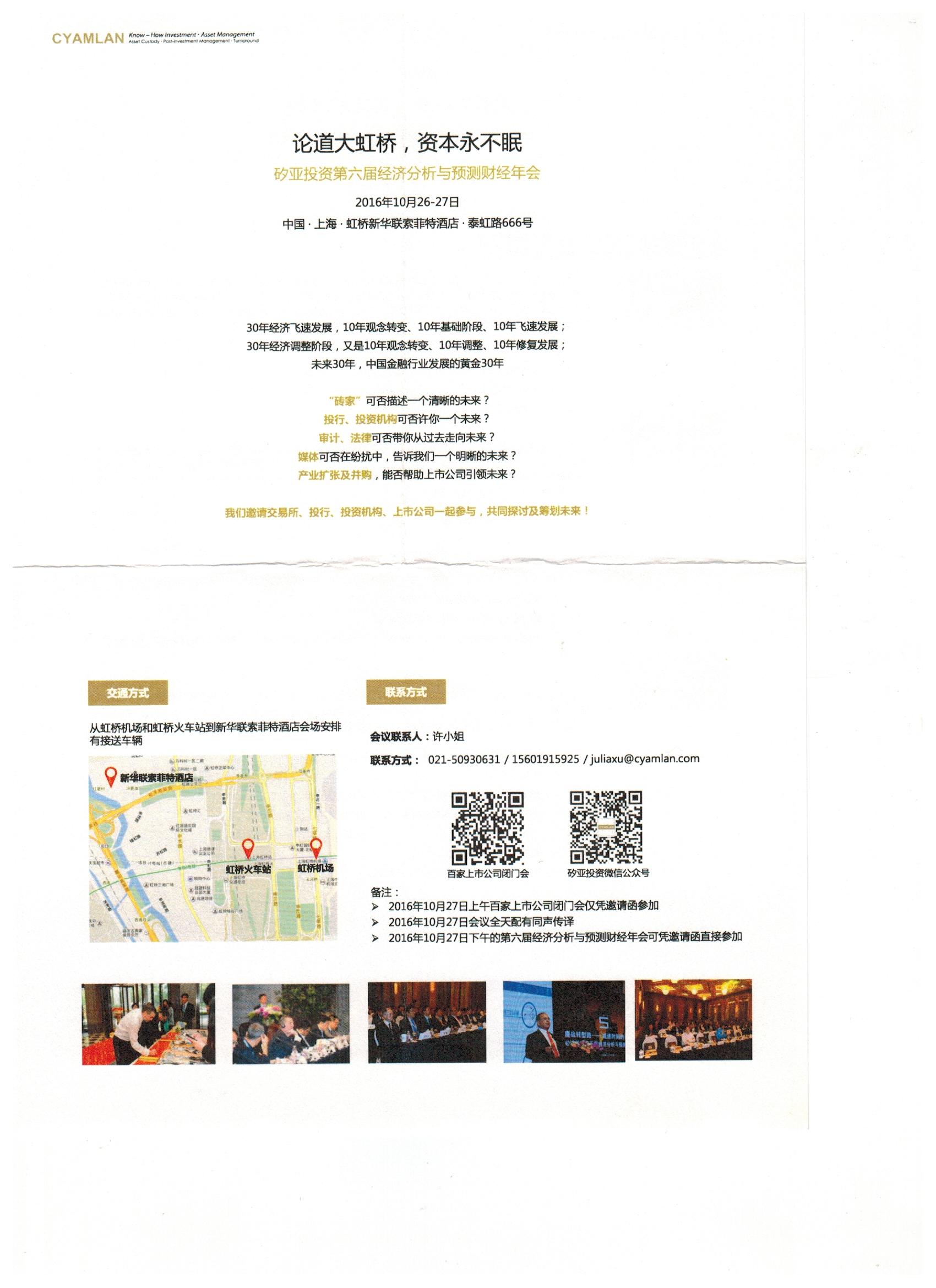 关于参加矽亚投资第六届经济分析与预测财经年会的报名通知