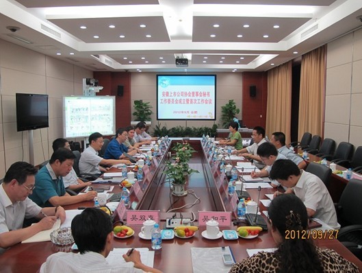 为进一步加强辖区上市公司董事会秘书队伍建设,发挥其在上市公司规范运作、信息披露和投资者关系管理等方面的积极作用,加强董秘之间的活动和交流,2012年9月27日,安徽上市公司协会董秘工作委员会成立暨首次工作会议在科大讯飞信息科技股份有限公司顺利召开。董秘工作委员会9家会员单位成员全部出席了本次会议。安徽证监局领导非常重视董秘工作委员会的成立,方向瑜局长多次对工作委员会的今后工作作出批示,唐理斌副局长及公司一处、二处领导亲临会议指导。
